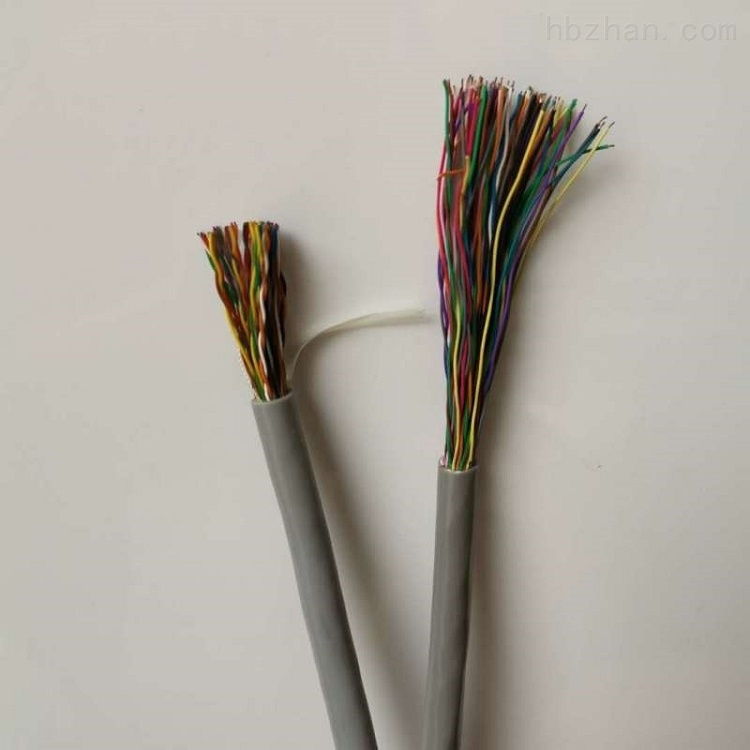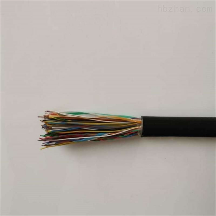 缆芯结构:以25对为基本单位,超过25对的电缆的按单位组合,每个单位都用规定色谱的扎带绕扎,以便识别。100对及以上的电缆加有1%的预备线对,但不超过6对。
