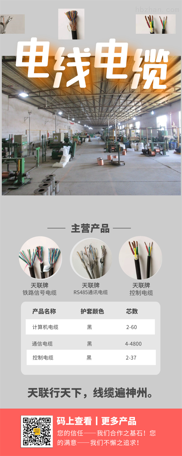 IC-CA仪表电缆适用发电、冶金、石化等工矿企业集散系统、电子计算机系统、自动化系统的信号传输及检测仪器、仪表等连接用多对屏蔽电缆。 IC-CA仪表电缆使用特性: 工作温度:一般不超过70℃。 zui低环境温度:固定敷设-40℃。非固定敷设-15℃。 一般阻燃性能符合GB12666.2-90规定;成束阻燃性能符合GB-12666.5-90规定. 额定电压:U0/U:300/500V. zui小弯曲半径:无铠装层电缆应不小于电缆外径的10倍;有铠装层电缆应不小于电缆外径的12倍. 主要技术指标: 产品型号及名称 ZR-IA-DJYPV:聚乙烯绝缘铜丝编织分屏蔽聚氯乙烯护套阻燃型本安电子计算机用电缆 ZR-IA-DJYVP:聚乙烯绝缘铜丝编织总屏蔽聚氯乙烯护套阻燃型本安电子计算机用电缆 ZR-IA-DJYPVP:聚乙烯绝缘铜丝编织分屏蔽、总屏蔽聚氯乙烯护套阻燃型本安电子计算机用电缆 ZR-IA-DJYPVR:聚乙烯绝缘铜丝编织分屏蔽聚氯乙烯护套阻燃型软结构本安电子计算机用电缆 ZR-IA-DJYVPR:聚乙烯绝缘铜丝编织总屏蔽聚氯乙烯护套阻燃型软结构本安电子计算机用电缆 ZR-IA-DJYPVPR:聚乙烯绝缘铜丝编织分屏蔽、总屏蔽聚氯乙烯护套阻燃型软结构本安电子计算机用电缆 ZR-IA-DJYP2V:聚乙烯绝缘铜带分屏蔽聚氯乙烯护套阻燃型本安电子计算机用电缆 ZR-IA-DJYVP2:聚乙烯绝缘铜带总屏蔽聚氯乙烯护套阻燃型本安电子计算机用电缆 ZR-IA-DJYP2VP2:聚乙烯绝缘铜带分屏蔽、总屏蔽聚氯乙烯护套阻燃型本安电子计算机用电缆 ZR-IA-DJYP3V:聚乙烯绝缘铝塑复合带分屏蔽聚氯乙烯护套阻燃型本安电子计算机用电缆 ZR-IA-DJYVP3:聚乙烯绝缘铝塑复合带总屏蔽聚氯乙烯护套阻燃型本安电子计算机用电缆 ZR-IA-DJYP3VP3:聚乙烯绝缘铝塑复合带分屏蔽、总屏蔽聚氯乙烯护套阻燃型本安电子计算机用电缆 IC-CA计算机仪表电缆注明: 1、钢带铠装计算机电缆后面加22 2、钢丝铠装计算机电缆后面加32 【我厂郑重声明】 1、产品质量保障承诺:不合格产品绝不出厂。 2、两年内产品质量跟踪服务,并将客户服务记录在档案长期保存。 3、IC-CA仪表信号电缆确因产品质量问题,我公司负责包退、包换、满足用户要求。