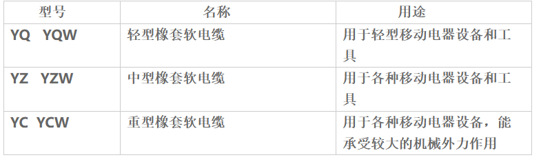 W为派生电缆具有耐气候和耐油性能,适宜户外或接触油污的场合。