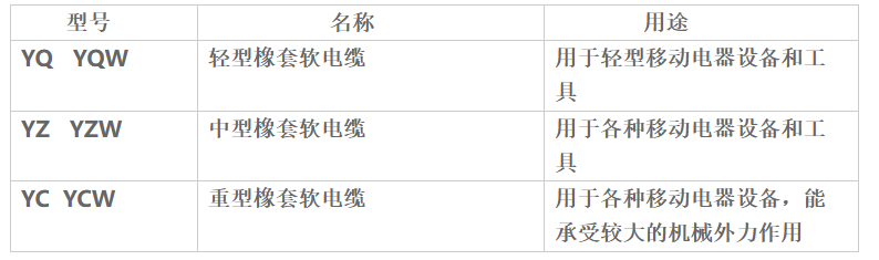 YQW、YQ轻型橡套电缆使用要求