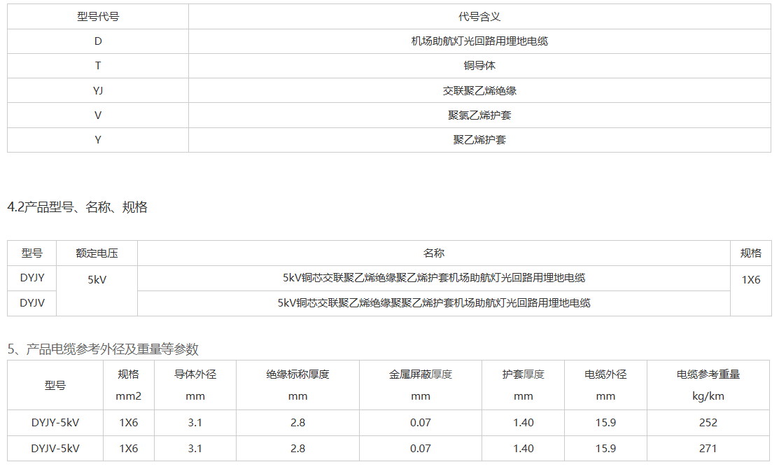 1、DYJY-2KV机场助航灯光电缆产品执行标准