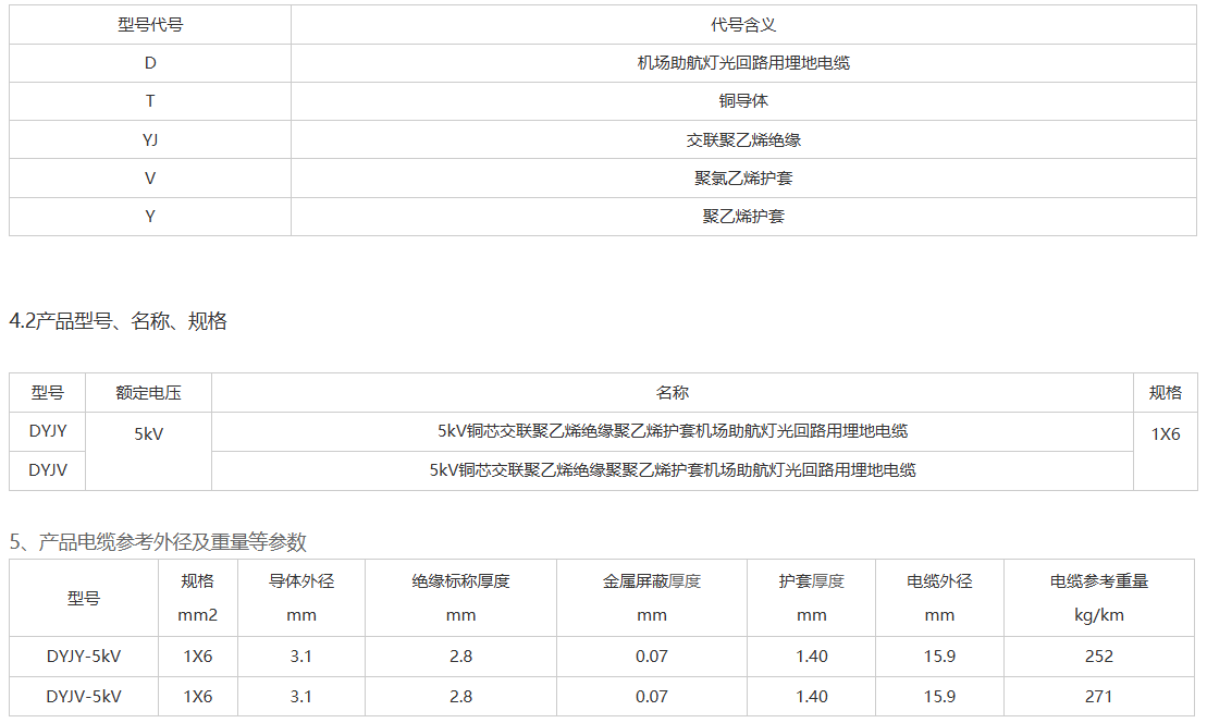 机场助航灯光回路用埋地电缆适用于机场助航灯光和信号灯系统主回路用埋地的电缆。