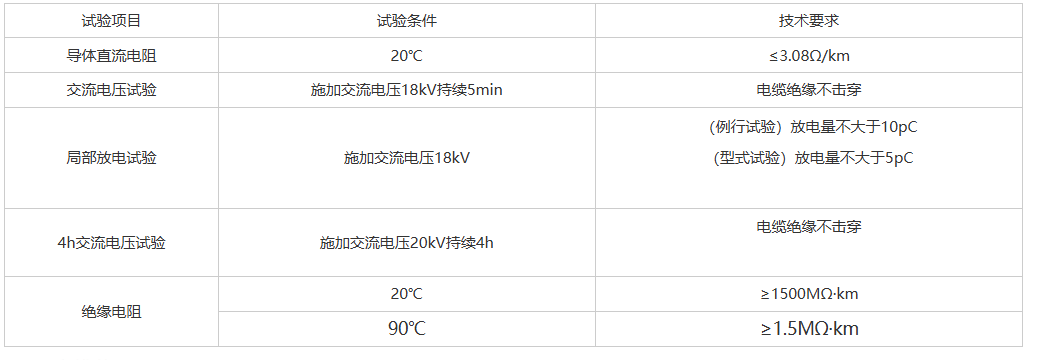 成品电缆应18kV试验电压下,放电量均不大于10pC。