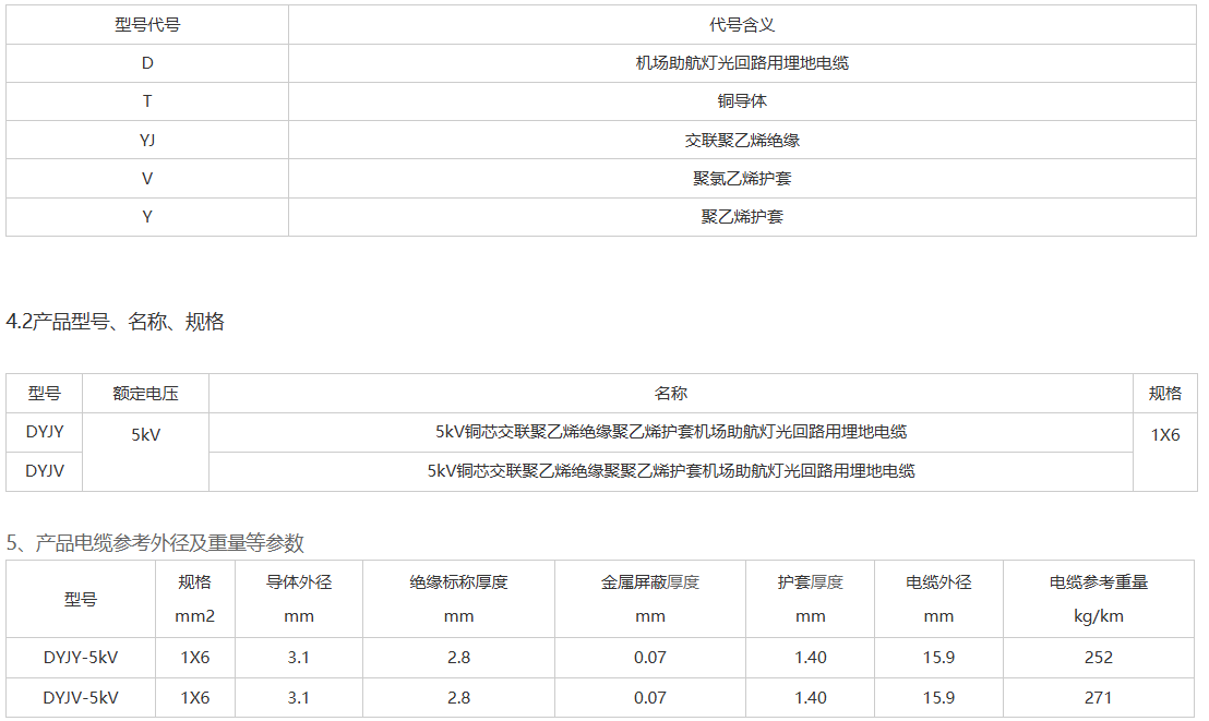 1、DYJY机场助航灯光电缆价格产品执行标准