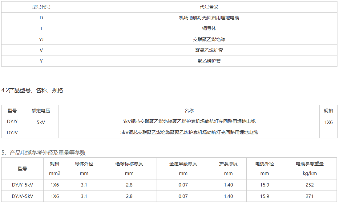 1、DYJY-5KV机场助航灯光电缆型号产品执行标准