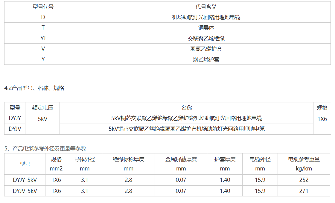 机场助航灯光电缆适用于机场助航灯光和信号灯系统主回路用埋地的电缆,产品执行标准MH/T6049-2008