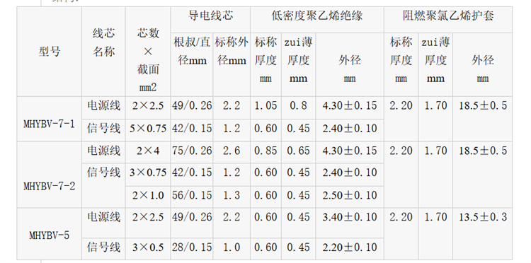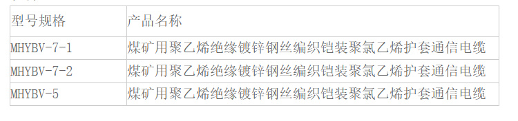 产品型号:MHYBV-7-1、MHYBV-7-2、MHYBV-5。